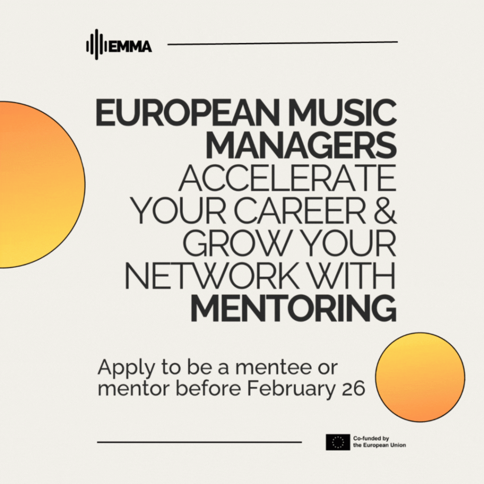 EMMA, l'Alliance européenne des managers de musique (EMMA), invite les manager·euses dans le secteur de la musique à poser leur candidature à son programme de mentorat EMMpower. Ce programme gratuit a pour but d'apporter un soutien professionnel aux manager·euses qui souhaitent développer leurs compétences dans l'industrie musicale d'aujourd'hui.